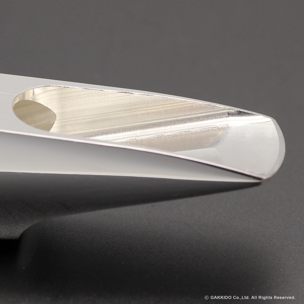 ブラジルのマウスピースブランド「Ever-Ton(エバートン)」。Ever-TonマウスピースはCNCとハンドフィニッシュによって製作されていますが比較的ラフな仕上がりでやや荒削りではありますがユニークな設計によって作られたマウスピースは独特の面白さを持ったサウンドキャラクターが特徴です。 Strengthの名の通り力強いサウンドが特徴でバッフルのステップ部分は高さがありますがチェンバーにかけてはある程度深さのあるデザインとなっており、力強くも適度な音の輪郭を持ち艶やかな音色も作ることができるモデルです。銀メッキ仕上げは金メッキよりもやや落ち着きのある柔らかさを持った音色が特徴です。