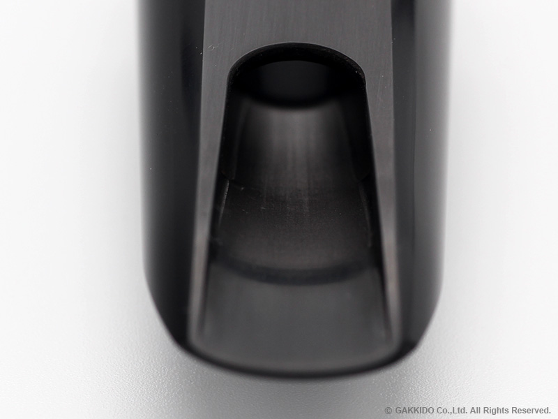 【スタッフのコメント】 いわゆるハイバッフルのデザインとは異なりバッフルは高く設計されていますがそこにロールオーバーバッフルを採用しチェンバーの中心に向かって息が流れるようにデザインされています。バッフルから鋭角に息が落ちるのはなく高さはありつつも丸みのあるバッフルデザインということもあってかスピード感と音のキレはありますが音が鋭すぎになることが無いのは良く考えられたモデルだと思います。他のモデルから言えば広がりのある音というよりもフォーカスしたサウンドですがコントロールすることで十分に図太さのある柔らかな音色も出せます。レスポンスに優れ鳴りが良くパワフルで明るくパンチの効いたサウンドももちろん楽しめますしフラジオも出しやすいです。単純にパワフルにキレのあるサウンドというわけではなくキレのある中にも程よい音の丸みというか洒落た雰囲気を持つ音の艶を感じますのでテナーラバーでフュージョンやスムーズジャズに使えるマウスピースをお探しの方にもお薦めのモデルです。