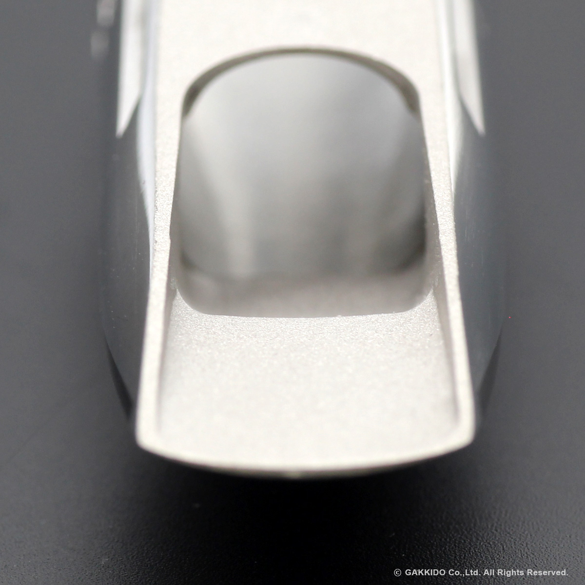 <ハイバッフルデザイン> ハイバッフルデザインは、マウスピースのチャンバー(空洞部分)を深くし、バッフル(内壁)を高くすることで、音に芯と輪郭を与えます。Metal HL2024は、このハイバッフルデザインをさらに進化させ、エッジの立ったパワフルなサウンドを実現しています。エッジの立ったサウンドは、特にスピーディーなソロやアドリブ演奏において、クリアで切れのある表現を可能にします。