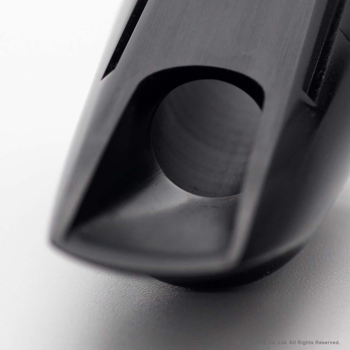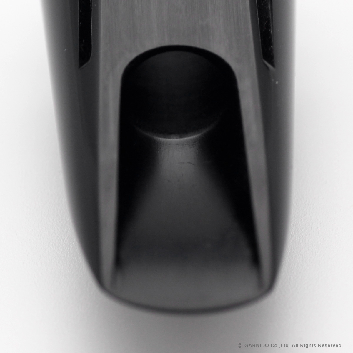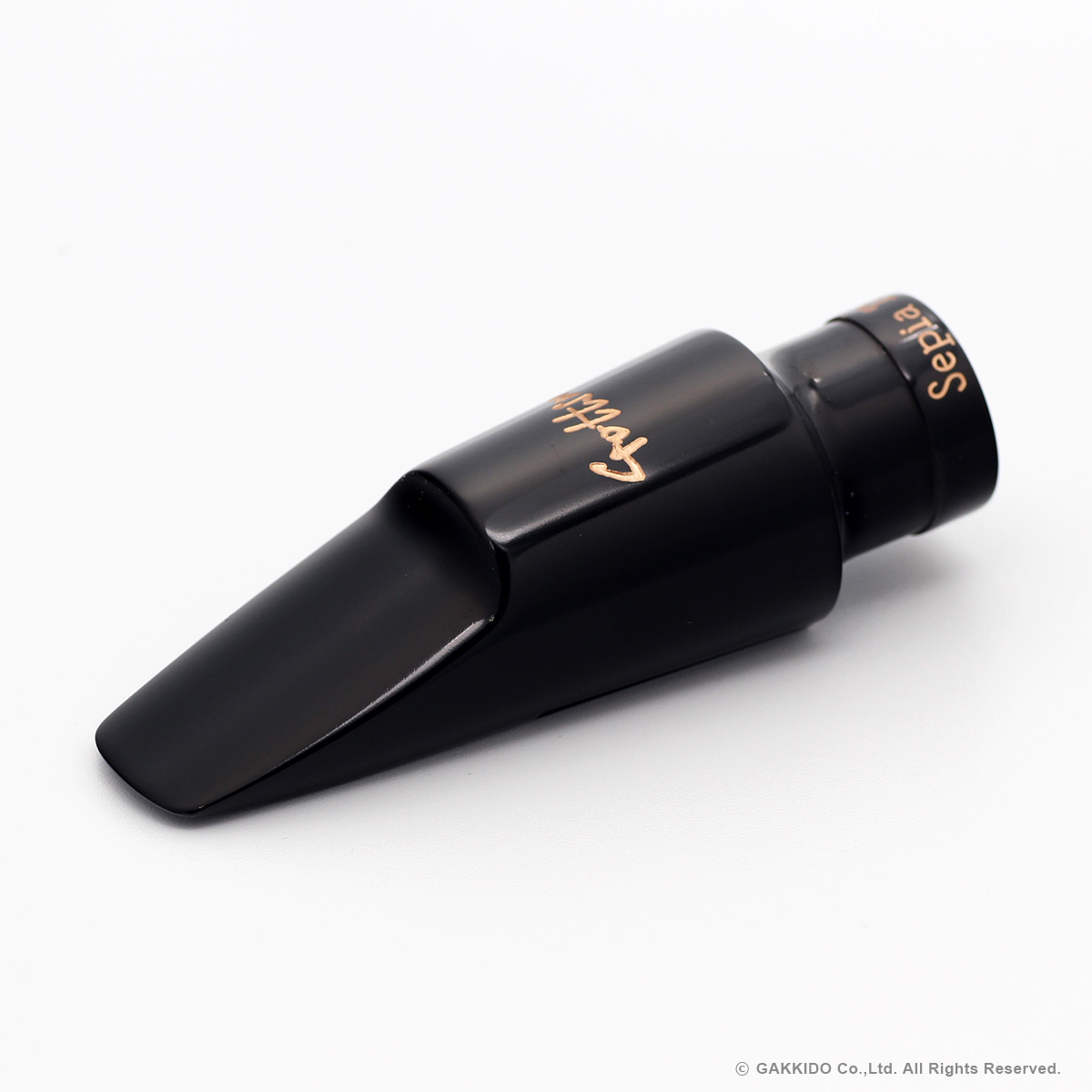 【スタッフのコメント】 以前のSepia Toneはシリコンラバー製だったのに対してハードラバーを採用したこちらのSepia Tone HRは、抜群のレスポンスや鳴りを踏襲しつつもさらに吹きやすくそしてラバーならではの音の深みを持ったモデルになったように思います。バッフルの先端には少しだけ高さのあるステップがあり小さめのラウンドチェンバーに向かって緩やかに下ったデザインになっています。同じラバー仕様のSepia Tone VIはチャンバーに向かってサイドウォールもラウンド状に大きめに彫り込まれており内部の容積も大きめなのに対して、こちらのモデルはサイドウォールについてはラウンド状に掘り込まれてはいますがSepia Tone VIほどではなく、チェンバーも小さめなデザインですので深く広く息が入るというよりもチェンバーに向かってフォーカスするような設計になっています。息の通りが非常にスムーズで楽に鳴らせますしハリのある明るめのサウンドが出しやすく、ジャズ系マウスピースが初めての方でも吹きやすいと思います。マウスピースの側面にはスライド式リガチャー用の溝がありますので別売りの専用リガチャーを取り付けることが出来ます。専用リガチャーは着脱も用意で、マウスピースとリガチャーには固定するポジションにガイドとなるラインが刻印されており細やかな気配りを感じます。なお、専用リガチャーを使えばGottsuが考えるポテンシャルを最大限まで引き出せると思いますが、他の一般的なリガチャーが装着できないということはありませんのでご自身のお好みに合わせてリガチャーは選択いただければと思います。上から下までムラなくスムーズで抜群の吹奏感を持ったモデルですのでプロやアマチュア問わず扱いやすいコストパフォーマンスに優れたマウスピースだと思います。