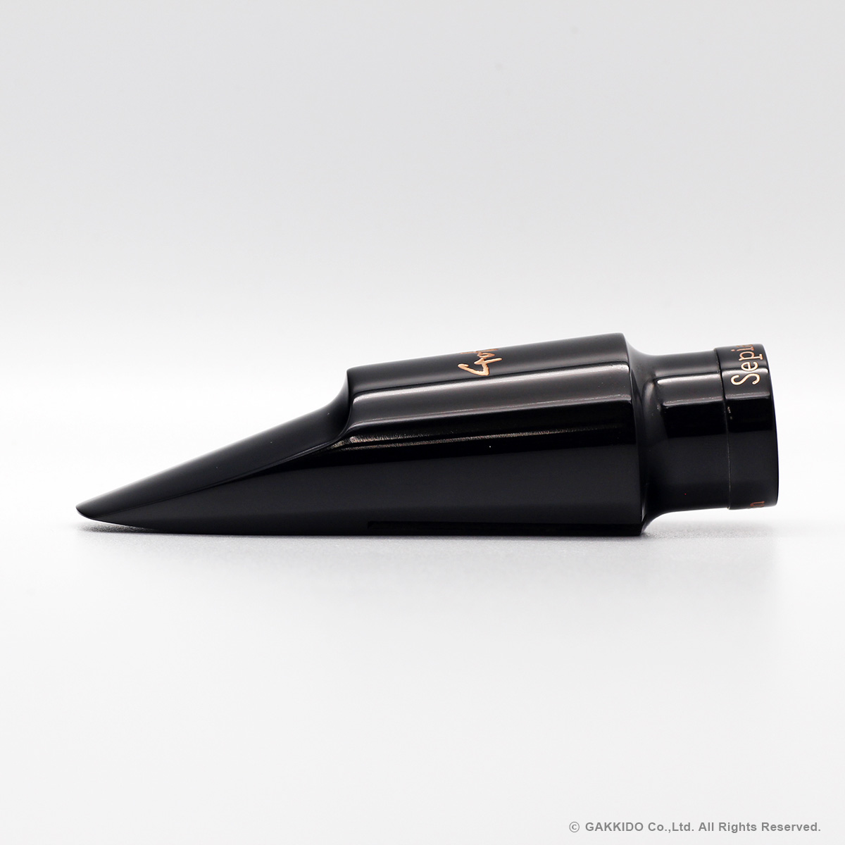 【スタッフのコメント】 シリコンラバーを採用していた以前のモデルとは異なり、ハードラバー製(エボナイト)となったSepiaTone HRはより音の深みが増し音に適度な厚みを持って鳴らせるようになったと思います。チェンバーに向かってサイドウォールを含めてラウンド状に掘り込まれており、バッフルの先端にはフラットではなく曲線を持ったステップバッフルがあり、SepiaTone VIのステップよりもやや高めに少し長さのあるステップバッフルとなっています。チェンバーもテナーには十分なサイズがあり、たっぷりと息を使ったサブトーンを出せば柔らかく渋みのあるジャズサウンドが存分に楽しめます。上から下までスムーズな吹奏感でバッフル先端のステップの効果なのかパンチの効いたサウンドも出しやすく、息の通りも非常にスムーズで楽に図太い音が出せますので1本目のジャズラバーのマウスピースとしてもお薦めです。音も軽すぎず適度な音の輪郭を持っていることで音がこもらずテナーらしい図太いサウンドを楽しむには十分な音の太さを持っていると思います。別売りのスライド式リガチャーを取り付けると音の芯もさらに増しながらもレスポンス良く、吹奏感も抜群に快適です。もちろん専用リガチャー以外の一般的な市販リガチャーも装着できますのでご自身のお好みに合わせてリガチャーを選択いただければと思います。コントロール性も良く、ストレスなく吹きやすいコストパフォーマンスに優れたジャズ系マウスピースをお探しの方にお薦めです。