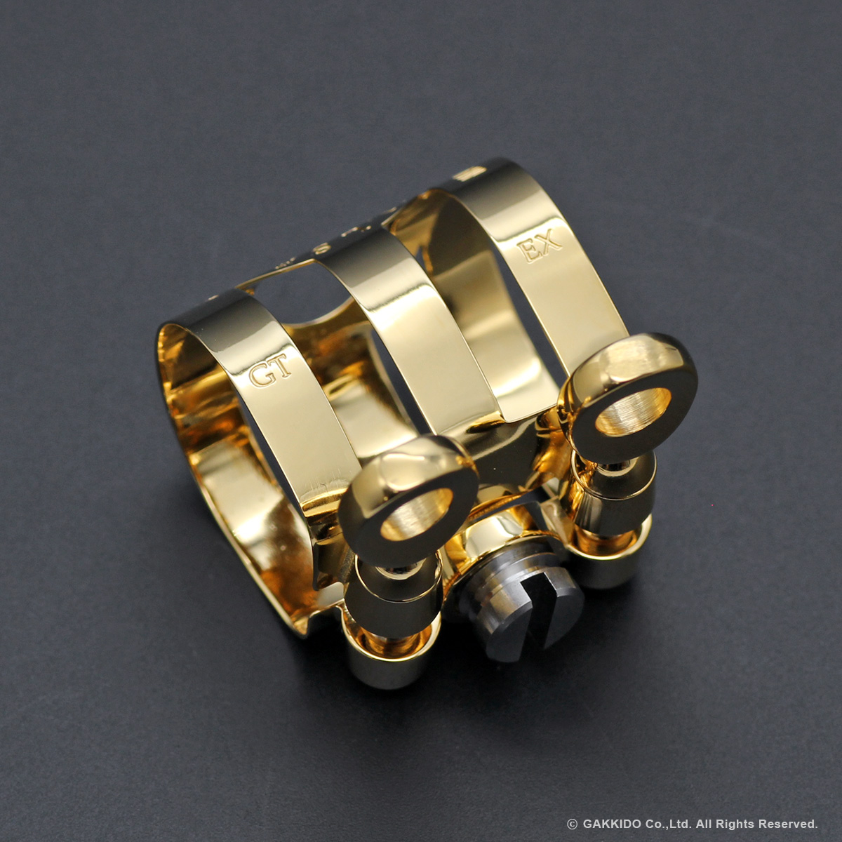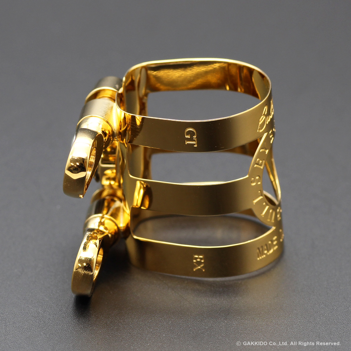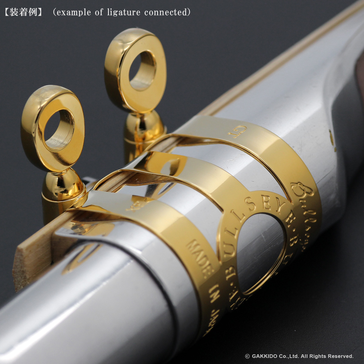 BULLSEYE(ブルズアイ) ブルズEX テナーサックス用リガチャー 対応:デイブ・ガーデラメタル 金メッキ仕上げ 特注 3-Band仕様 バランサーを採用した独自設計のこだわりハンドメイドリガチャー!ブルズリガチャーは完全ハンドメイドで、従来ある純締めリガチャーに特殊加工されたウェイトを付ける事により、絶妙なバランス感、心地よい吹奏感を伴って、リードの振動、豊かな倍音を最大限に引き出します。また、多くのリガチャースクリューは鋳物による接合で作られていますが、ブルズアイのリガチャースクリューは真鍮削り出しのスクリューを採用し、振動を遮らず、スムーズに息のエネルギーを活かすよう細部までこだわって作られています。別売りのバランサーを使用することでウェイトを変えることができますので、好みに応じて抵抗感や音色の微調整を行うことができるのもこのリガチャーのユニークな特徴のひとつです。
