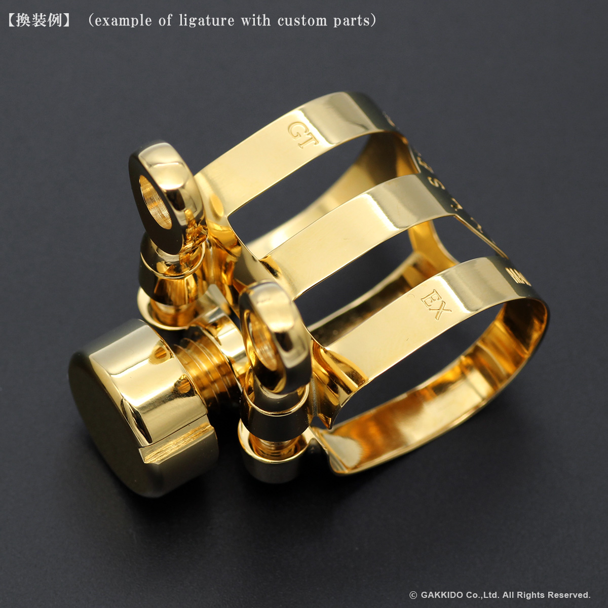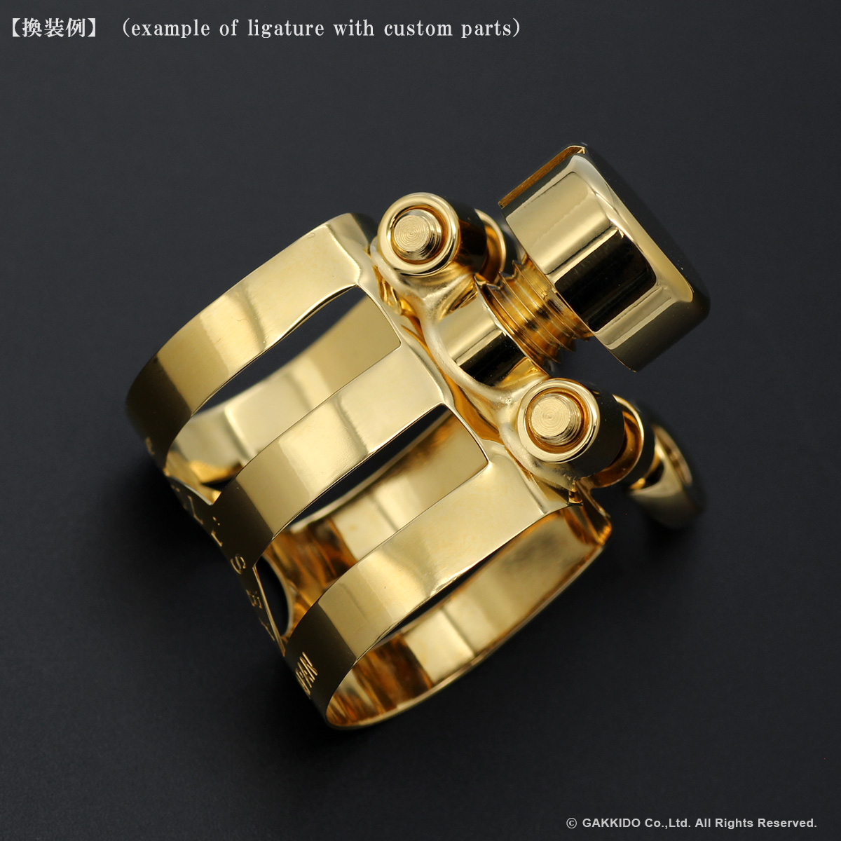 こちらのモデルは当店からヴィンテージのデイブ・ガーデラをブルズアイへ送り、そのマウスピースから採寸した後、リガチャー本体のデザインを従来の仕様ではなく3バンドタイプの仕様で製作した特注モデルとなっています。ガーデラで採寸したことにより装着具合も良く、しっかりとリードを固定できます。また、付属のバランサーはレギュラーバランサーとスーパーバランサー Lサイズの2種類があり、奏者の好みに応じて換装することができます。ガーデラのテナーメタルに使える表締めリガチャーをお探しの方への新たな選択肢となるモデルです。