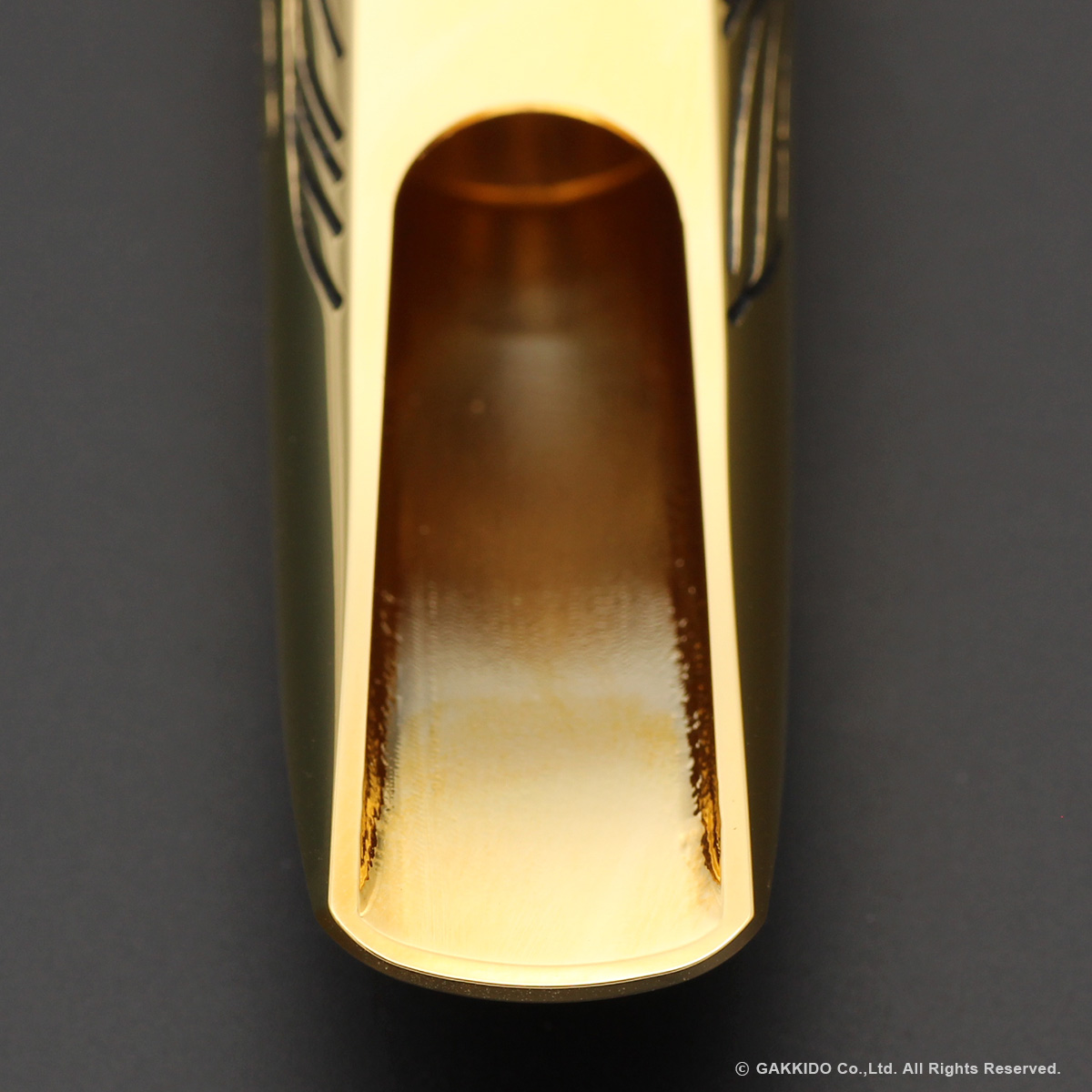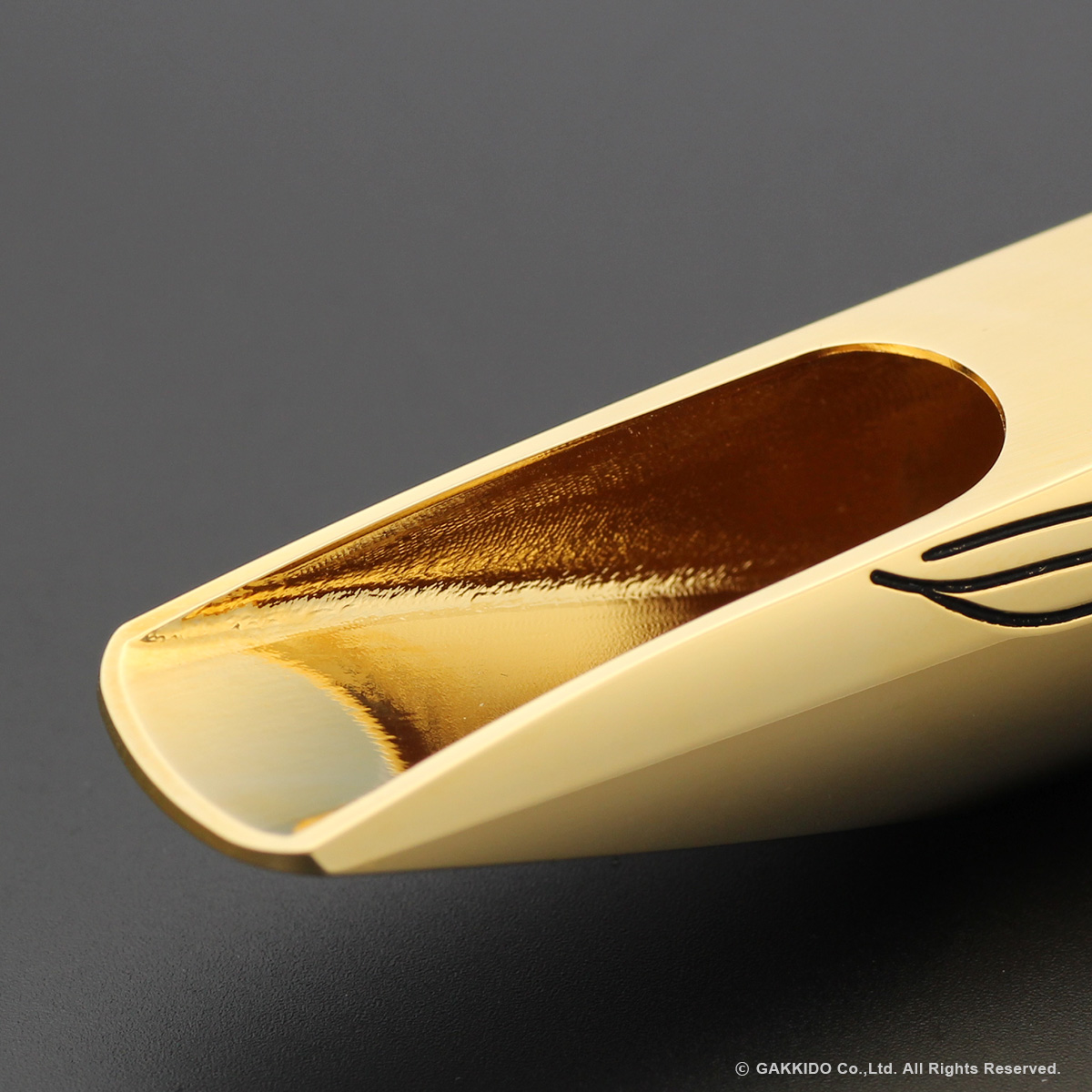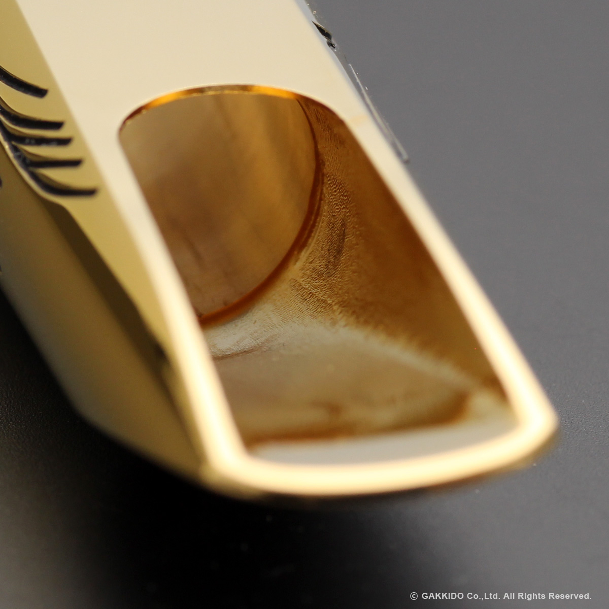 【スタッフのコメント】 高精度で仕上げることができるCNCを導入して自社工房で作られたモデルということもあり、ティップレールやサイドレールもバランス良く仕上がっておりシンプルなデザインながらもこだわりを感じるモデルに思います。バッフルはローバッフル系ですが先端部分が若干高くデザインされておりチェンバーも今までのセルマーから言えばずいぶん大きめに設計されています。サイドウォールはフラットではなくやや掘り込みのあるラウンドタイプですが某テナーメタルほどは掘り込みは深くなくほどほどに削り込まれています。また、近年のマウスピースはビークが低めにデザインされているものも多々ありますが、このモデルは適度なビークの高さがあり咥えた際に口元が小さくなりすぎることがありませんので太く息を入れることができます。基本的にふくよかで柔らかさある音色で音に太さもありファットさのあるジャズサウンドが楽しめます。音の中心に程よく芯があり、まとまりのある音の周りに少しファットさのある音色が混じり響くことで雰囲気のあるサウンドが心地良いです。音の輪郭も程よくあり音がこもらず上から下までスムーズにレスポンス良く鳴らすことができます。金メッキの光沢も美しく、テーブルやバッフルも光沢のある仕上がりでややつるっとした風合いになっています。音色のクセは強くなくザラザラとした雑味のある音色というよりかは洗練された柔らかさを持つクリアなサウンドですがサブトーンも出せますし十分な太さを持って鳴らすことができます。吹きやすいにもかかわらず太くファットなサウンドが出せるのも魅力です。付属のリガチャーとキャップは従来のセルマーメタル用リガチャーとはまた異なり傾斜のついたデザインでユニークです。どことなくセルマーらしさも感じられつつテナーのジャズサウンドに欲しい音の図太さと柔らかさ力強さを持ったクオリティに優れたメタルマウスピースだと思います。
