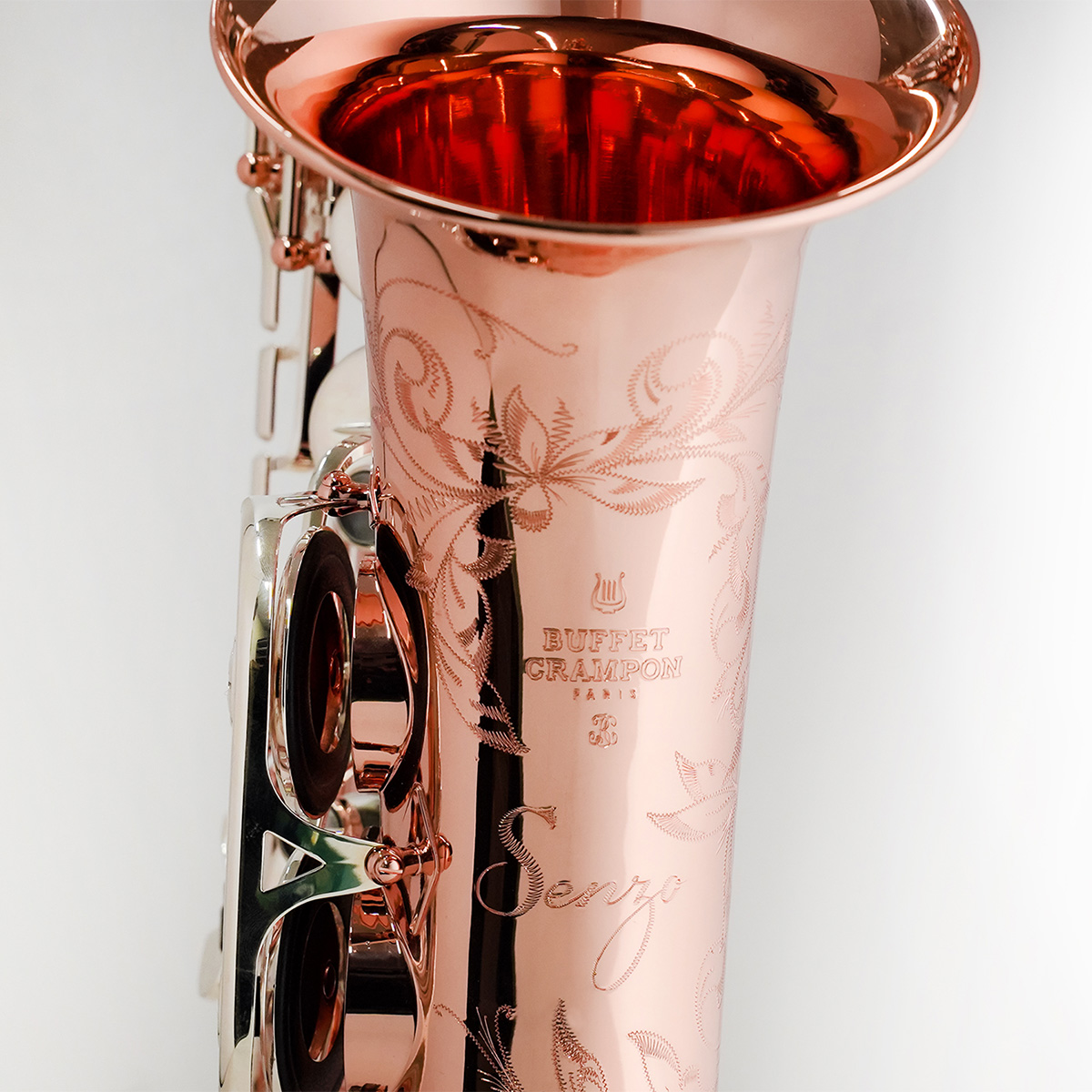ビュッフェ・クランポンは1825年に創業し2025年で200周年を迎えました。 その節目を記念し数量限定で製作されたセンゾの200周年特別限定コレクション仕様のアルトサックスです。本コレクションはセンゾの象徴である銅製銅メッキ仕上げ管体に銀メッキのキーをあしらい、200周年を祝う特別な彫刻を施しブランドの技術と審美性を体現した1本に仕上がっています。