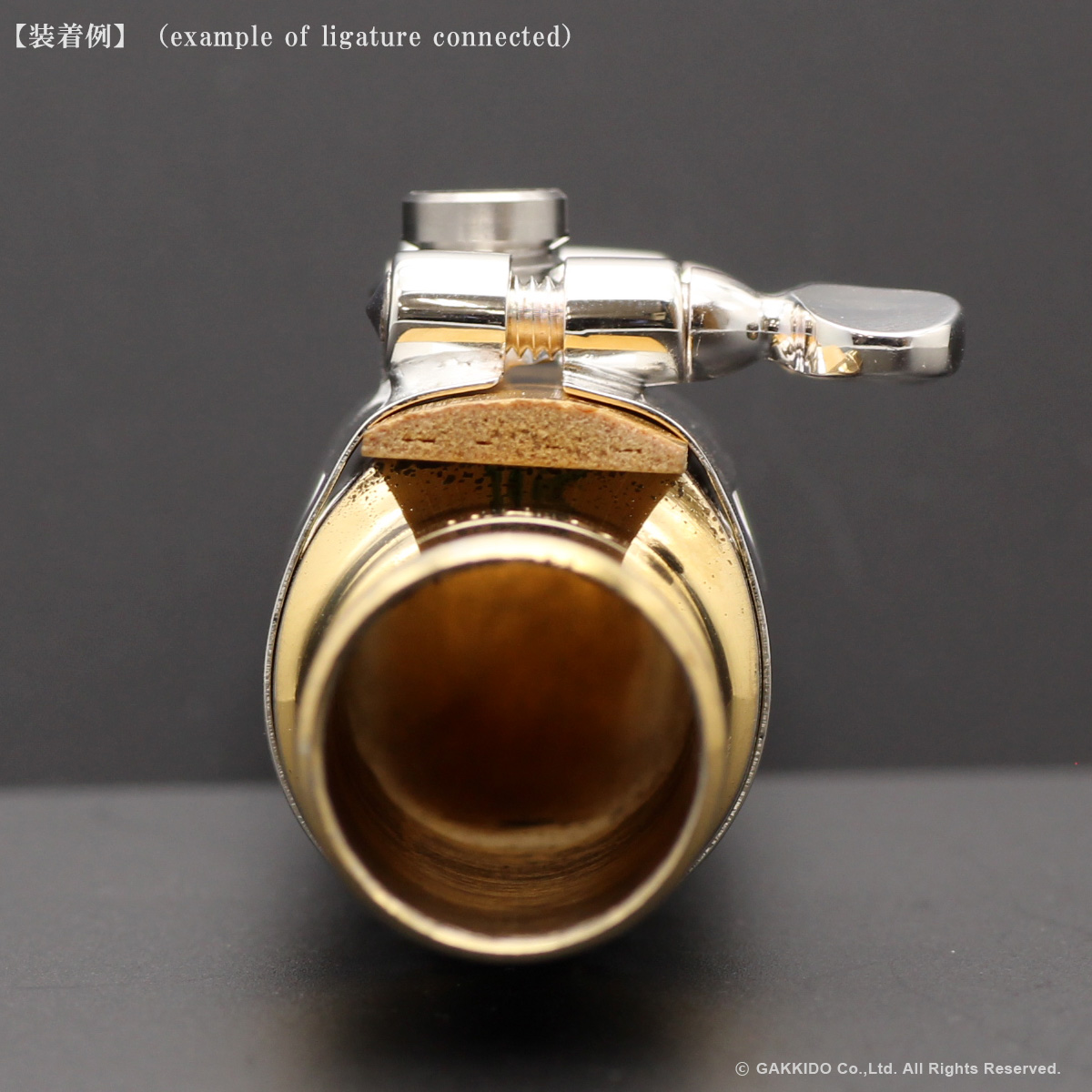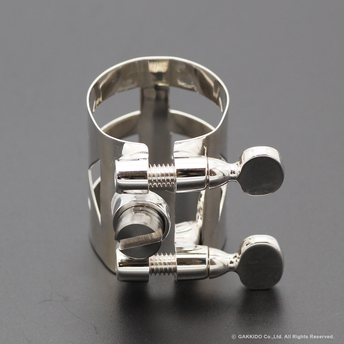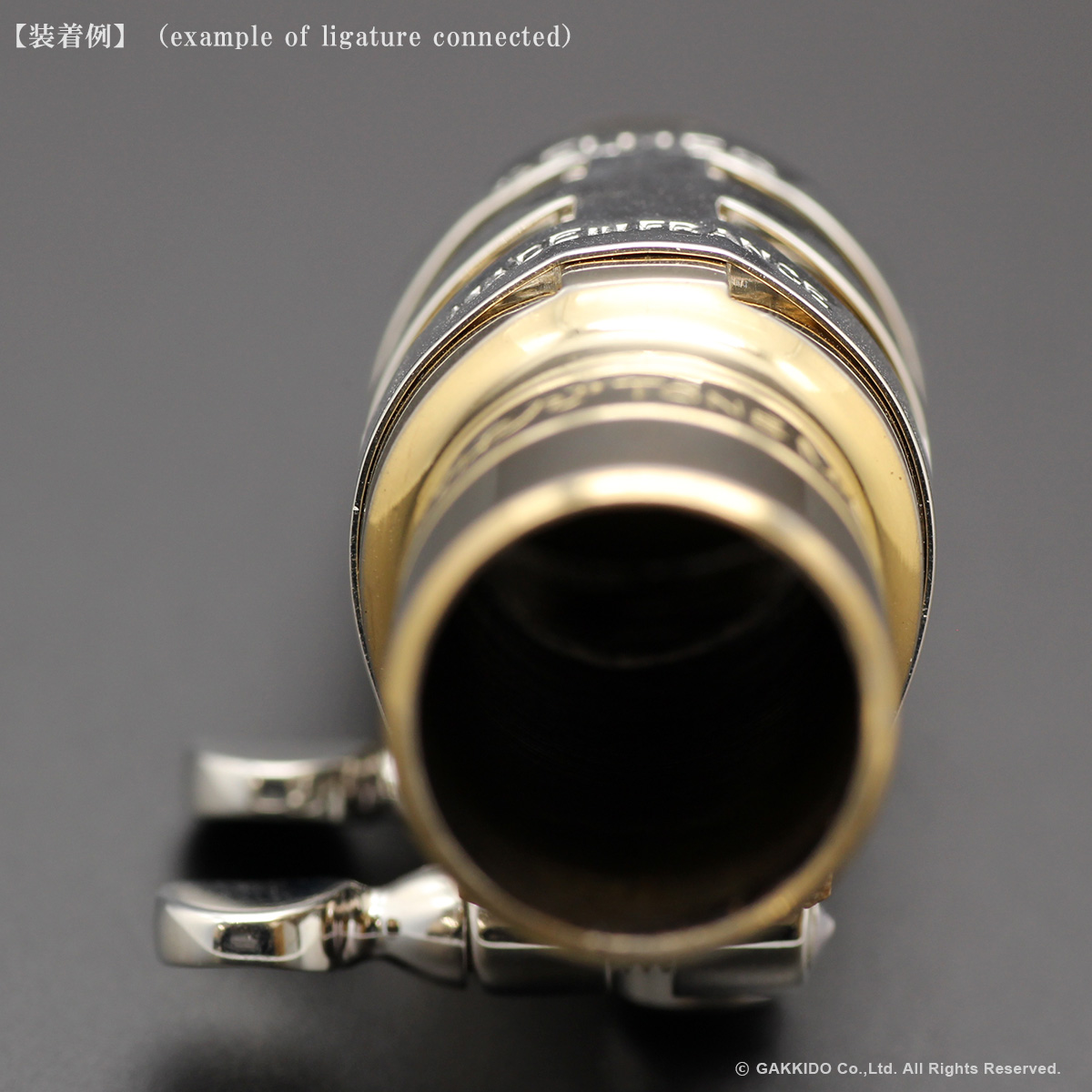セルマーのメタル用リガチャーをベースにブルズアイ独自のバランサーの台座を取り付けており、従来のセルマーリガチャーとはまた一味違う吹奏感と音色を楽しむことができます。従来のブルズアイリガチャーと同様にバランサーの換装も可能ですので、重厚感や抵抗感に変化を与えたい場合は別売りのスーパーバランサーのMサイズやLサイズももちろんご使用いただけます。また、セルマーリガチャーの構造に対して耐久性と安定性を考慮し、バランサーの台座は従来のブルズアイリガチャーとは異なる取り付け方がされています。セルマーリガチャーのリガチャースクリューの台座とバランサーの台座を銀ロウとはんだ付けを用いて結合し、そのうえで再度銀メッキ加工がされており手間を惜しまず仕上げられています。また、リガチャーの形状をオットリンクメタルのボディにある突起にもある程度対応できるように手が加えられています。オットリンクメタルに使用できる表締めリガチャーをお探しの方に良い選択肢となる特注品のカスタムリガチャーです。